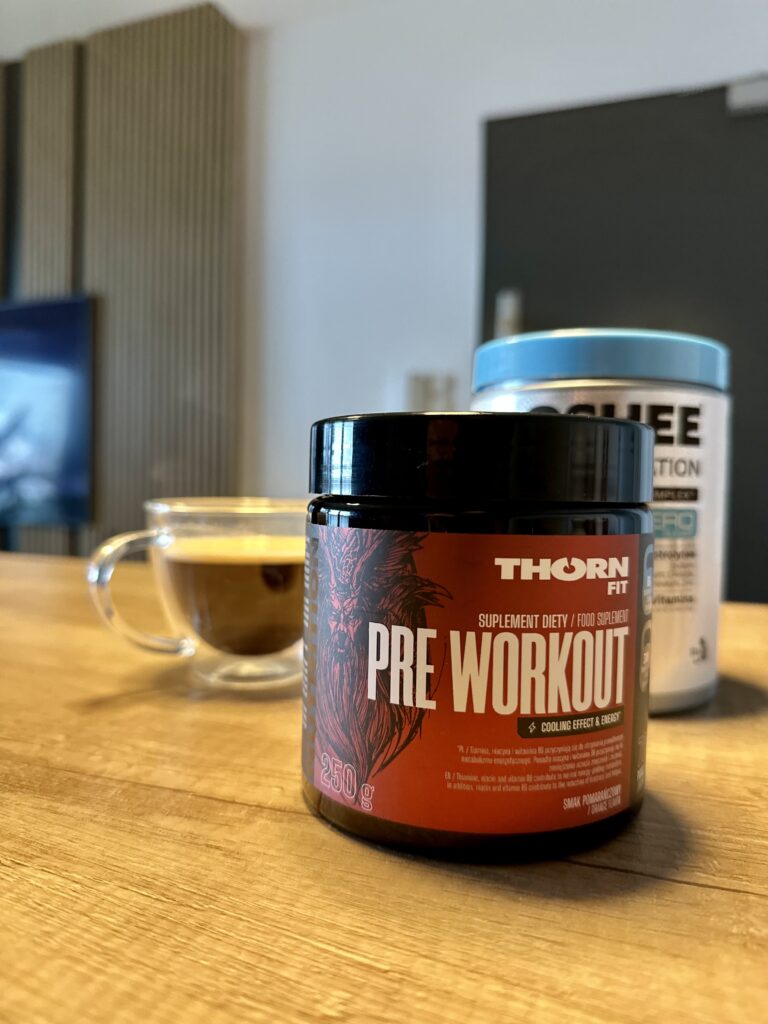 • THORN FIT 20–30 min przed dla mocy + koncentracji.
